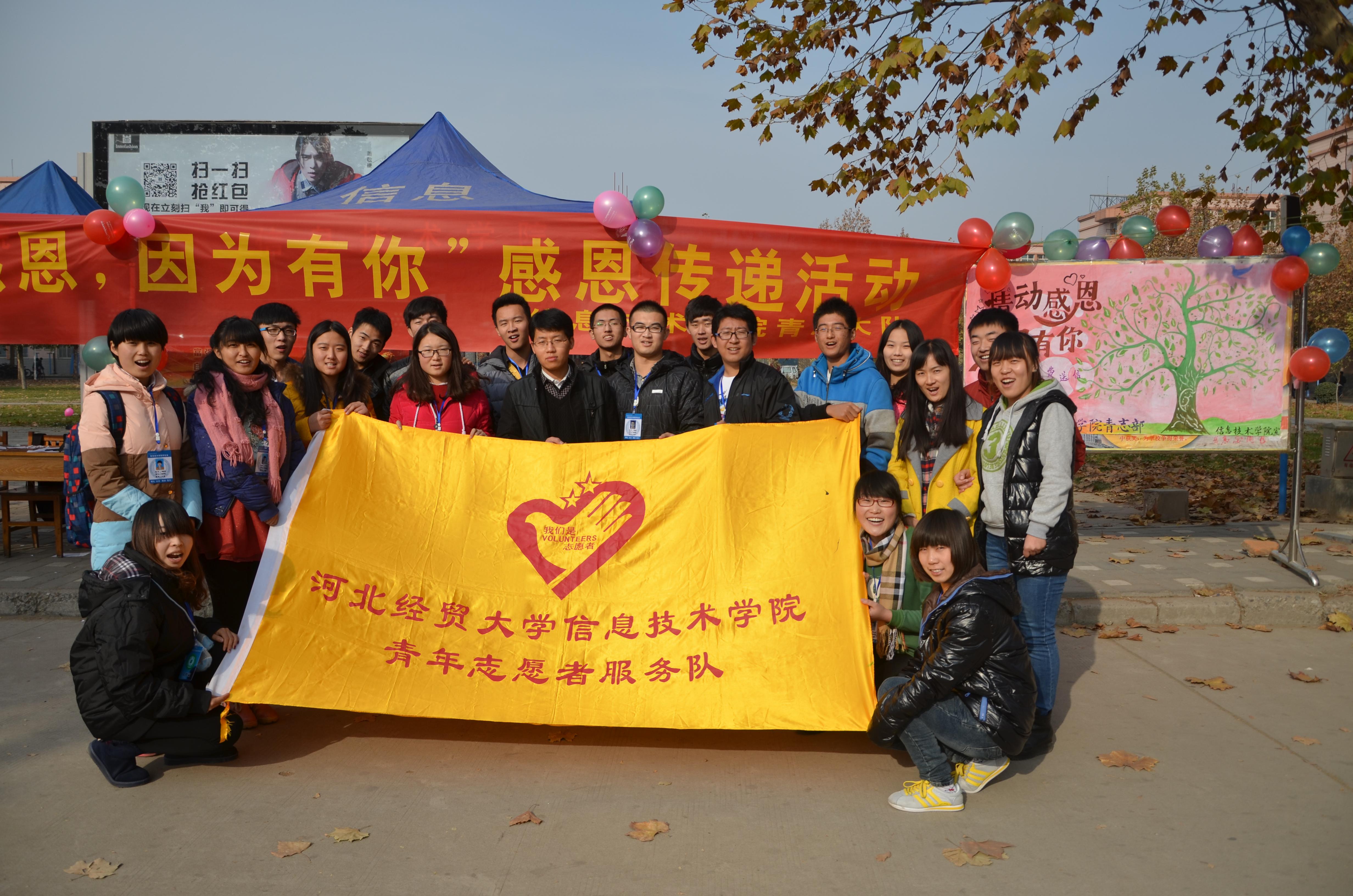 活动分为录制感恩视频、现场征集信件免费邮寄两个部分。23日上午,信息学院志愿者大队趁着学生周末闲暇之际,在校园内向同学、老师做关于感恩问题的问答活动,同时进行视频录制,后经剪辑做成合集。24日上午,在韶华路宣传展示,面向经贸学子现场征集感恩信件,后期免费邮寄,由于上下课时间较集中,收集信件工作收效良好,过路同学在现场写的不亦乐乎,整个活动进行的有条不紊。在活动结束后,志愿者们也将陆续邮寄出信件。