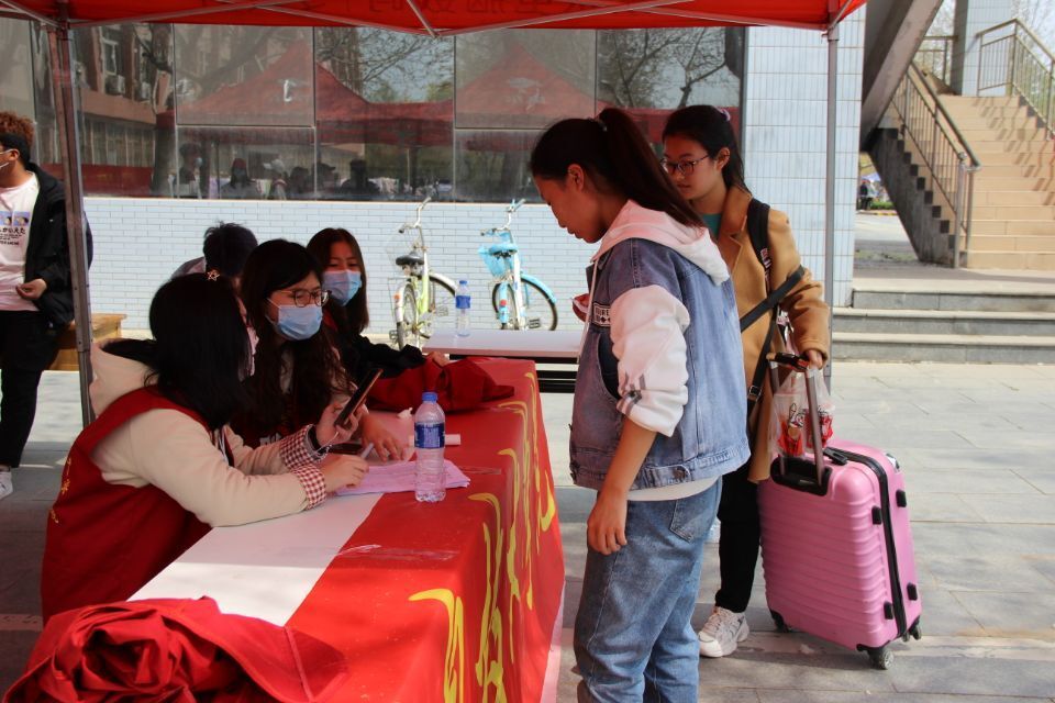 根据疫情防控形势,为切实保障学生的身体健康和生命安全,我院按照各学院错时错峰、分批次返校的有关要求,于4月6日正式开展2021年春季返校报到工作。校领导董兆伟、刘兵、刘建平亲临我院报到点检查学生返校工作落实情况,院党委书记靳国良、院长孙立辉、党委副书记韩玉强一行来到学生报道点慰问工作人员,检查学生报道和防疫工作开展情况。各办公室主任、各班辅导员以及全体志愿者均在现场热情地引导学生返校,确保返校报到工作有条不紊地进行。