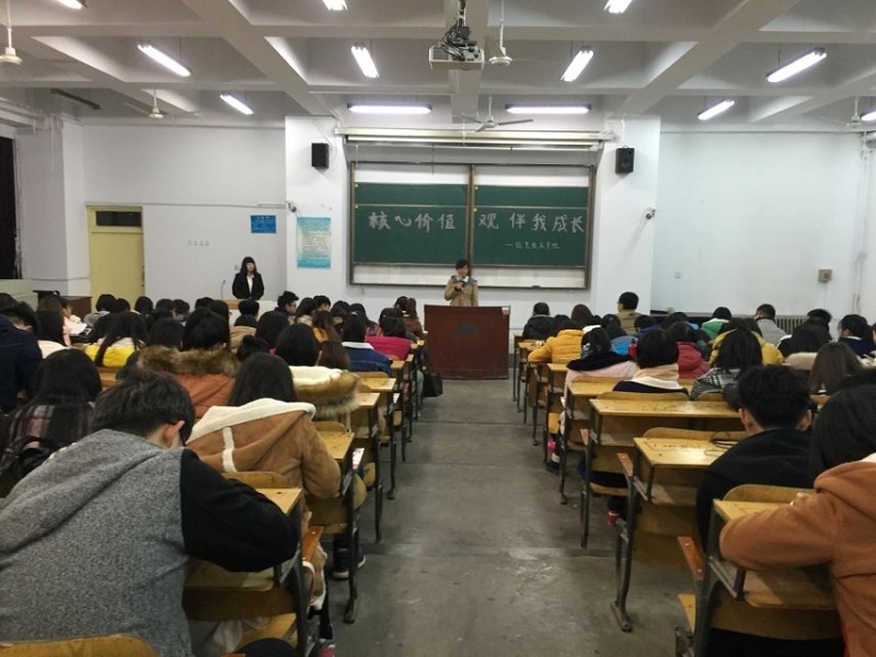 11月16日晚,德赢Vwin官方区域合作伙伴在北五教二教室举办“核心价值观伴我成长”演讲比赛,各班辅导员以及学生会主席团成员出席本次活动,2013级、2014级与2015级的学生代表参加比赛。