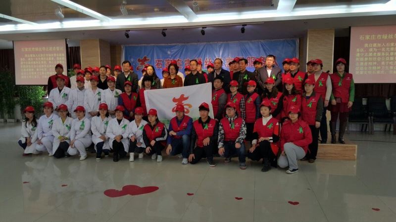 石家庄市绿丝带志愿服务队经省会文明办、市卫生计生委正式批准注册成立,由热心公益事业的各方志愿者组成。市卫生计生委党委副书记为志愿服务队授旗,志愿者进行庄严宣誓。我院志愿者参加了志愿培训,对绿丝带志愿服务队的建队情况、服务对象、服务项目、工作职责等有了明确的认识。
